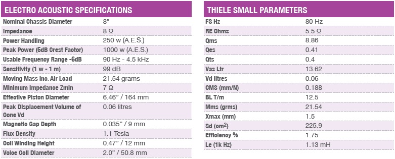 A gerinccel ellátott (die-cast) váz köré épült berendezés jellemzője a 2 colos, tömör új motorrendszerrel működtetett hangtekercs. A széleskörűen használható frekvenciaátadás alkalmassá teszi több egységből álló PA rendszerekhez is.