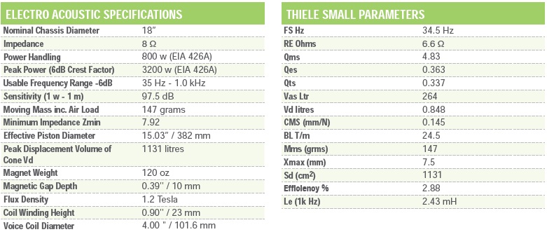 Pro-sound berendezésekhez való használatra. Közepes és nagy, szellőztetéssel ellátott dobozokban való használatra tették ideálissá. Jól működik zárt dobozban is mint basszus- vagy padlóék.